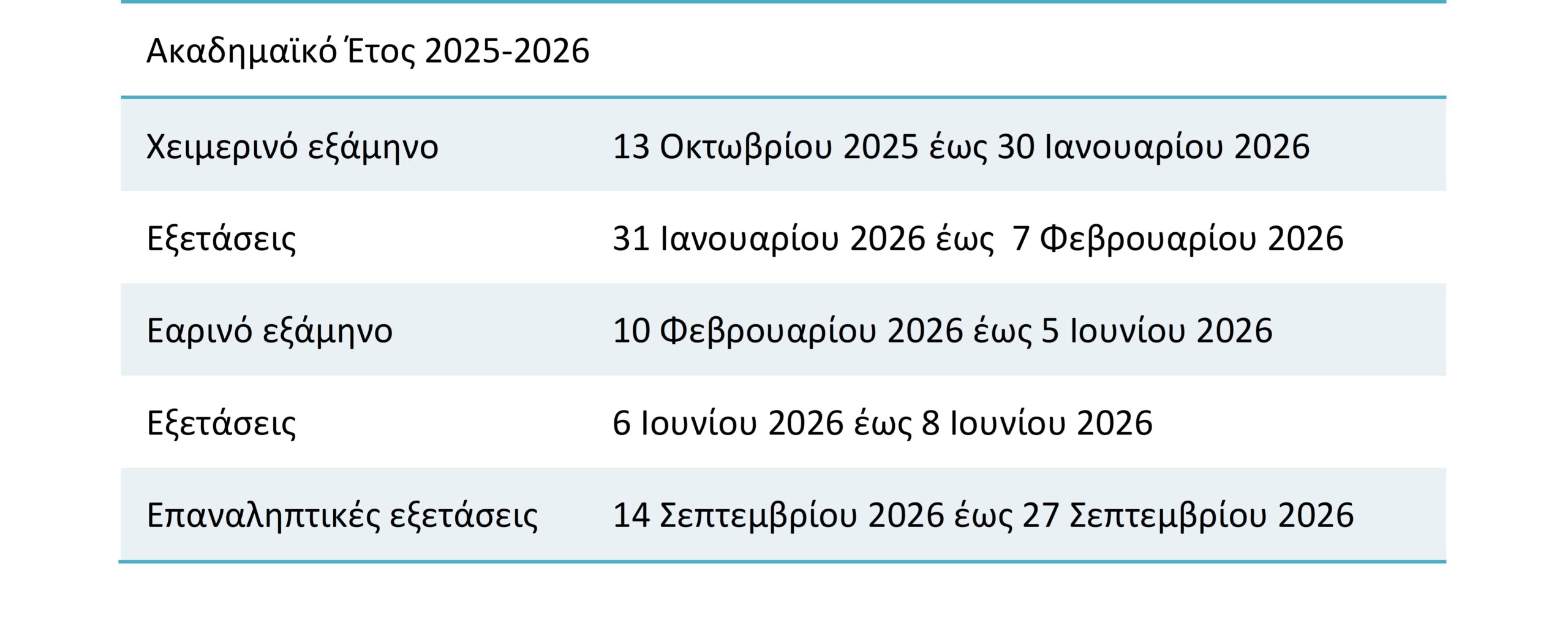 Ακαδημαϊκό Ημερολόγιo 2025-2026